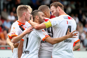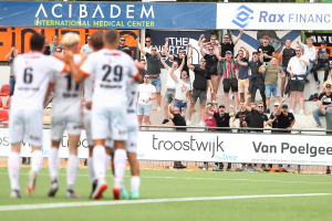 Katwijk mocht de nieuwe competitie aftrappen tegen de (nog steeds) regerend kampioen AFC. Het werd een prachtige zaterdagmiddag op de Zuidas in Amsterdam voor de vele meegereisde Katwijk-supporters: 1-4!