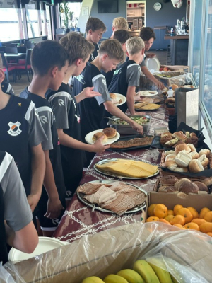 Na een heerlijk lunchbuffet in het sponsorhome konden de spelers even bijkomen.