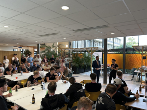 Het elftal en de staf werden hartelijk ontvangen en onder het genot van een hapje en drankje in het zonnetje gezet vanwege deze zeer bijzondere prestatie - de laatste keer dat Katwijk 2 dit lukte was maar liefst 30 jaar geleden.