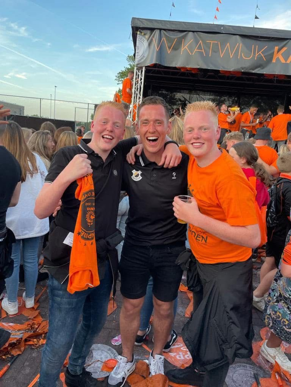 Na afloop van de wedstrijd liepen we gezamenlijk met een mega stoet Katwijk-supporters richting het gemeentehuis om het kampioenschap te vieren met de balkonscène. Dat zijn de momenten waarvoor je leeft en om nooit te vergeten.